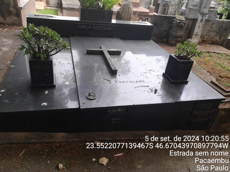 CONSTANCA BUENO LEITE - 30/11/1927 * MARIA LEITE - 30/1/1951 * JOSE PORTOLANO - 21/8/1959 * CARMELA LONGINO PORTOLANO - 17/3/1986 * FORTUNATO PORTOLANO - 18/6/2016