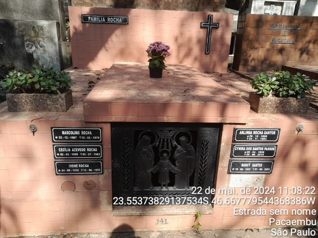 IRINEU ROCHA NETO - 20/6/2003 * IRACEMA DE SOUZA OLIVEIRA - 16/11/1952 * ANGELA ROCHA - 31/7/1964 * ARLINDA ROCHA SANTOS - 4/11/1964 * MARCOLINO ROCHA - 10/05/1974 * ISAURA GALDINO DE OLIVEIRA - 5/07/1978 * ANTONIO CANDIDO BRIGIDA DIAS - 9/06/1981 * CECILIA AZEVEDO ROCHA - 5/07/1983 * ISABEL GALDINO ROCHA - 25/8/1985 * DURVAL ROCHA - 28/4/1988 * YVONNE ROCHA - 13/6/1993 * ADELINA ROCHA ALVES - 18/4/1972 * CYNIRA DOS SANTOS PASSOS - 29/9/2014 * NANCY SANTOS - 21/9/2022