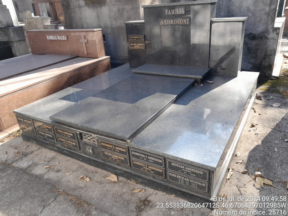 ELISA ERCOLANI OCCHIALINI - 20/9/2008 * VIOLANTE BONINI ANDROZANI - 7/12/1948 * PEDRO ANDROSONI - 25/9/1968 * ESTEVAM ANDROSONI - 1/01/1998 * LOURENCA STRUFALDI ANDROSONI - 22/1/1997 * ETTORE ANDROSONI - 2/01/1979 * GIOVANNINA ANDROSONI ANDREONI - 4/10/1978 * VITORIA ANDROSONI ESCOLANI - 8/04/1970 * SYLVIO OCCHIALINI FILHO - 15/2/2022