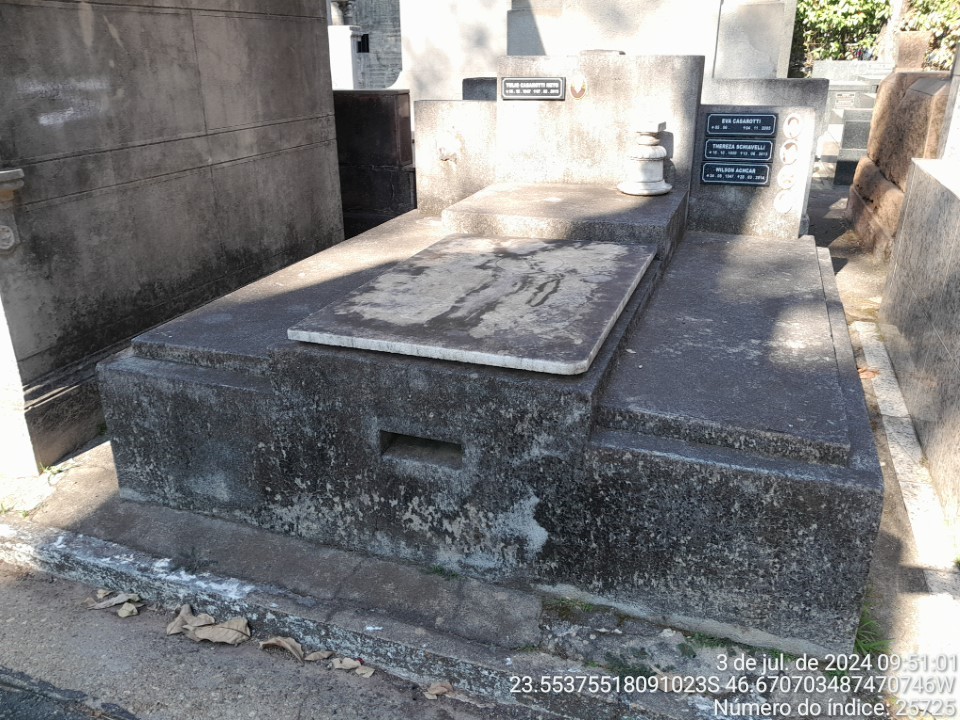 MARIA RAMOS - 1/04/1989 * DECIO SCHIAVELLI - 31/10/2000 * ADELINA NATALE - 5/07/1992 * ELIAS ASSEF AYOUB - 20/9/2002 * BRASILINA SCHIAVELLI AURICCHIO - 24/12/1996 * EVA CASAROTTI - 4/11/2005 * VICENTE BARONE - 10/09/1965 * ALFREDO FERNANDES DA SILVA - 26/4/1967 * THEREZA SCHIAVELLI - 10/08/2013 * JOSEFINA SCHIAVELLI DOS REIS - 26/4/1972 * WILSON ACHCAR - 28/3/2014 * JORGE BARONE - 25/1/1976 * DANTE SHIAVELLI - 6/12/1990 * TULIO CASAROTTI NETO - 7/02/2019 * ROBERTA FERREIRA DIAS - 5/04/2019 * CONCEI�AO LAZZARINI - 1/05/2020 * TOMAZ ANTONIO TRIPICIANO - 24/2/2021 * MAGALI SCHIARELLI - 7/06/2022