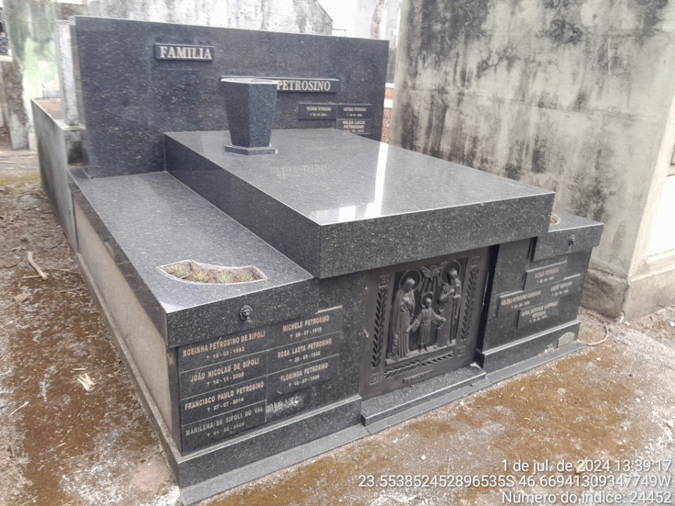 JOSE PETROSINO - 24/10/1962 * JOSEFINA MARINACCI DINARDI - 2/11/2002 * ROSINHA PETROSINO DE SIPOLI - 19/3/1993 * JOAO NICOLAU DE SIPOLI - 10/11/2002 * FLORINDA PETROSINO - 11/07/1985 * FRANCISCO PAULO PETROSINO - 27/7/2014 * YOLANDA PETROSINO - 30/11/2014 * NICOLA PETROSINO - 22/9/1960 * MARIA DOMINGAS LAMPOGLIA PETROSINO - 13/12/1973 * ILDA LUCIA PETROSINO - 16/5/2016 * GENY PETROCINO - 13/5/2017 * MARILENA DE SIPOLI DO VAL - 1/02/2020