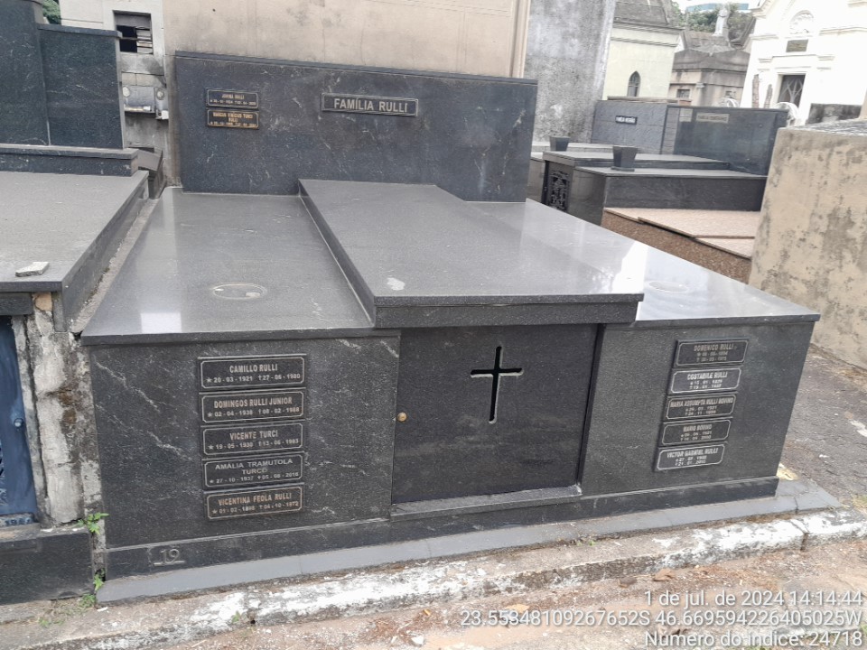 CONCHETA RULLI PARMIGIANO - 4/08/1982 * CAMILLO RULLI - 27/6/1980 * VICENTE TURCI - 13/6/1993 * DOMINGOS RULLI JUNIOR - 9/02/1988 * VICTOR GABRIEL RULLI - 21/1/2016 * AMALIA TRAMUTOLA TURCI - 5/08/2016 * JOVINA RULLI - 2/04/2020